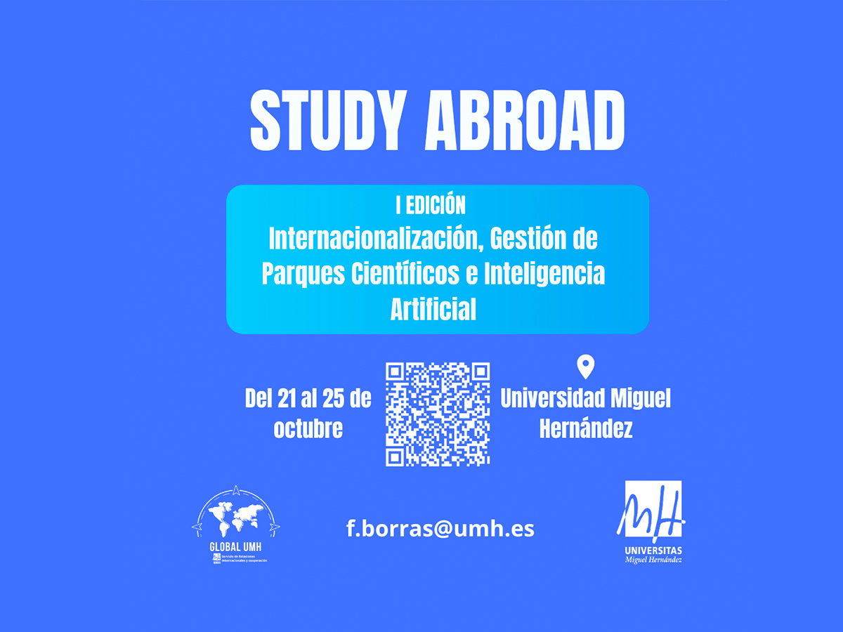 Internacionalización, Gestión de Parques Científicos e Inteligencia Artificial es el título del curso Study Abroad que ha coordinado el profesor de la Universidad Miguel Hernández de Elche (UMH) Fernando Borrás. La primera edición de este programa de formaciones presenciales sobre inteligencia artificial, patrimonio empresarial y ODS, entre otros contenidos, se desarrollará del 21 al 24 de octubre en el edificio Quorum I del campus de Elche.