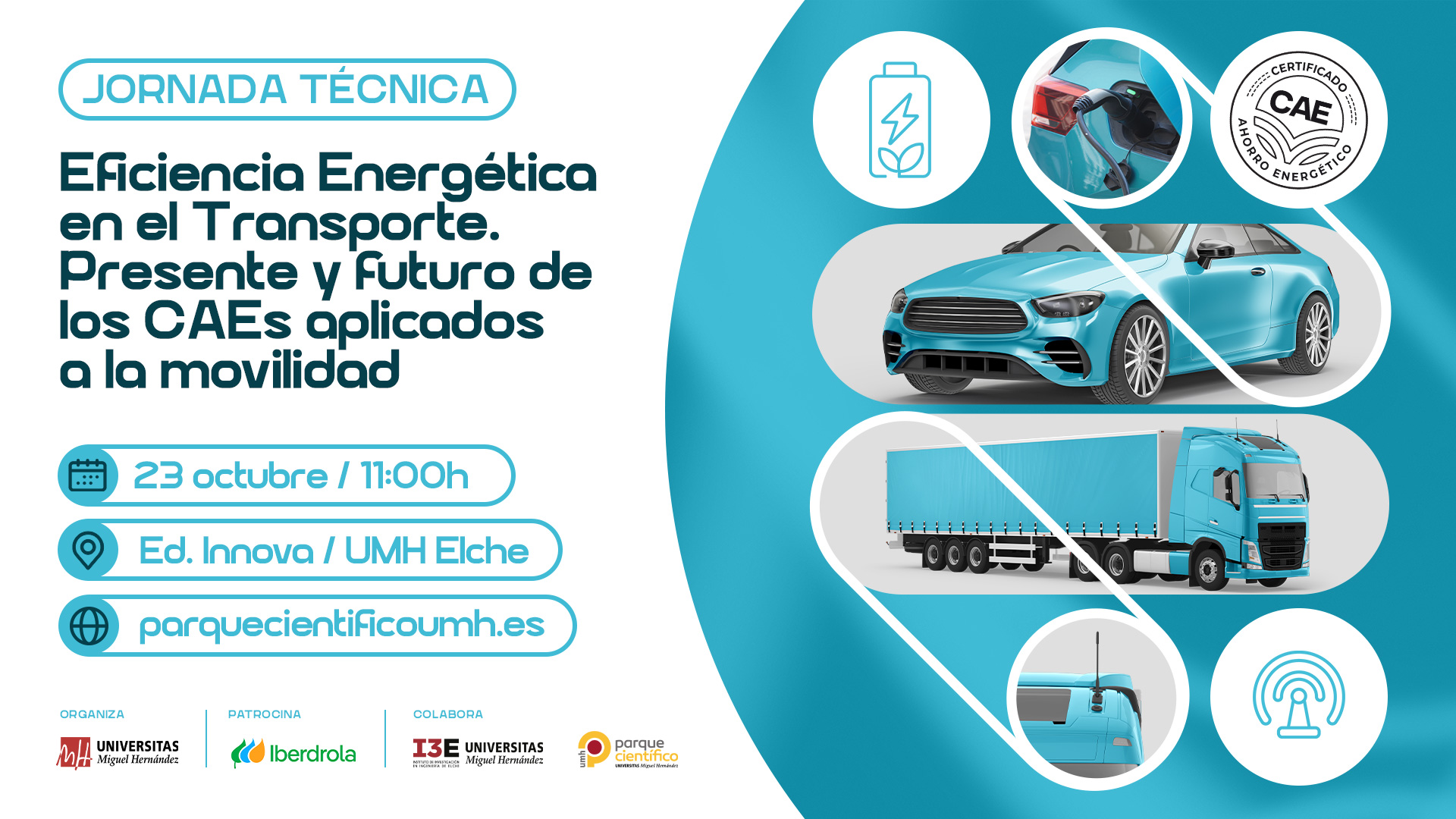 La asistencia es gratuita y está abierta al público en general, previa inscripción en https://parquecientificoumh.es/eventos/eficiencia-energetica-transporte-caes-movilidad