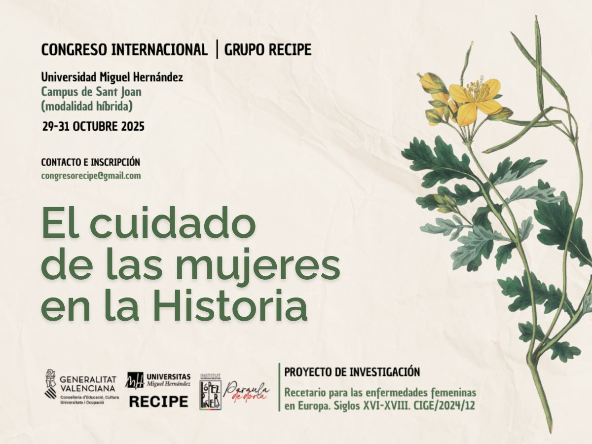 El acceso es gratuito y no se requiere inscripción. Más información: https://recipeumh.wordpress.com/2025/09/09/congreso-internacional-del-o-recipe-el-cuidado-de-las-mujeres-en-la-historia/