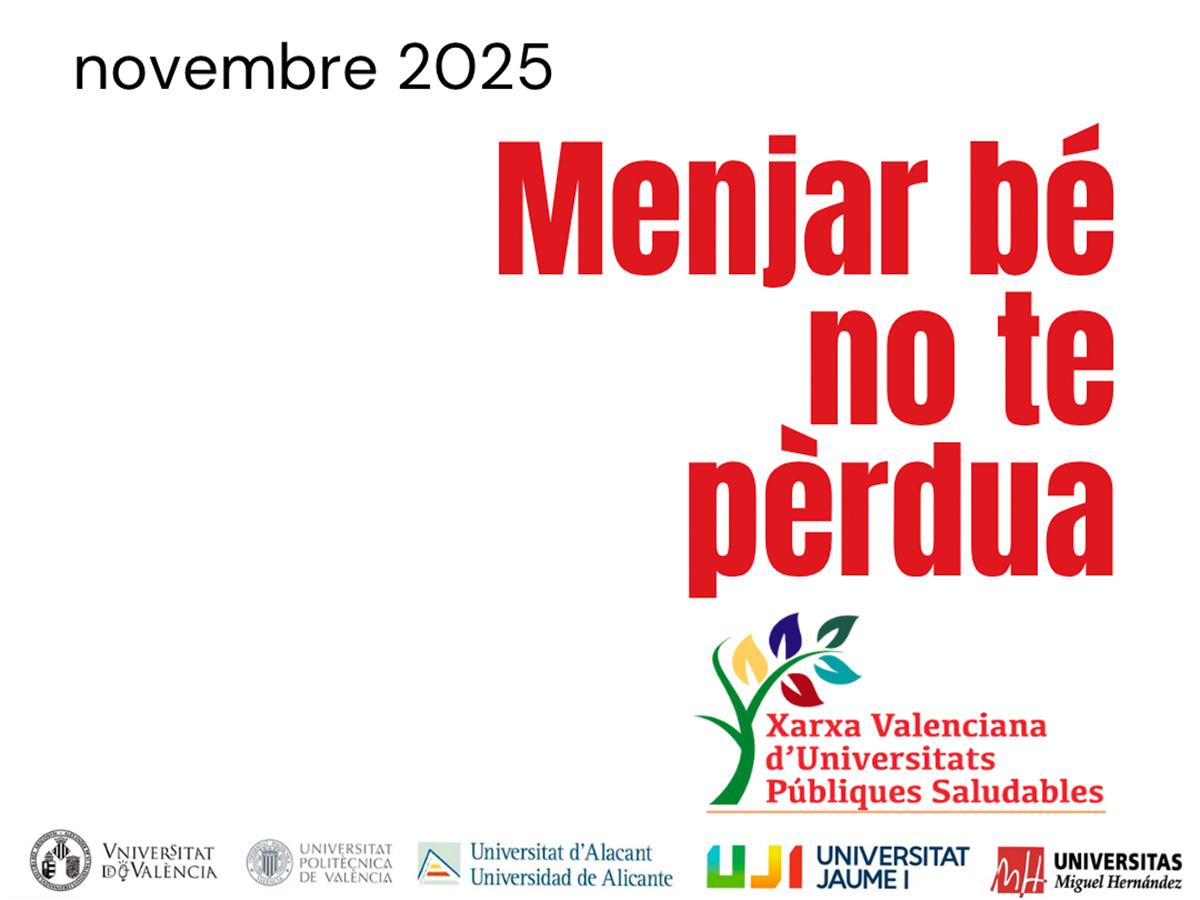 La Xarxa Valenciana de Universitats Públiques Saludables, representada en la Universidad Miguel Hernández de Elche (UMH) por la Delegación del rector de Campus Saludables y Deportes, ha lanzado la campaña digital Menjar Bé no te Pèrdua, que aúna la alimentación saludable y la sostenibilidad. La campaña continue seis piezas en valenciano para redes sociales, organizadas en varias temáticas o ámbitos de actuación.