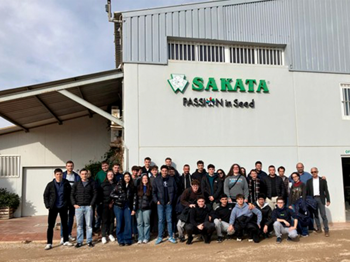 Un grupo de estudiantes del Grado en Ingeniería Agroalimentaria y Agroambiental de la Universidad Miguel Hernández de Elche (UMH) ha visitado en Murcia el Centro de Investigación de SAKATA SEED IBERICA, ubicado en San Javier, y Semilleros el Mirador. Los profesores de Genética de la UMH Aránzazu Alonso y Santiago García han acompañado al estudiantado durante el recorrido por las instalaciones de esta proveedora de nuevas variedades y un semillero de hortalizas de última generación. La visita se enmarca dentro de las asignaturas de Genética y Mejora Vegetal y Horticultura, ambas de 3er curso del Grado.