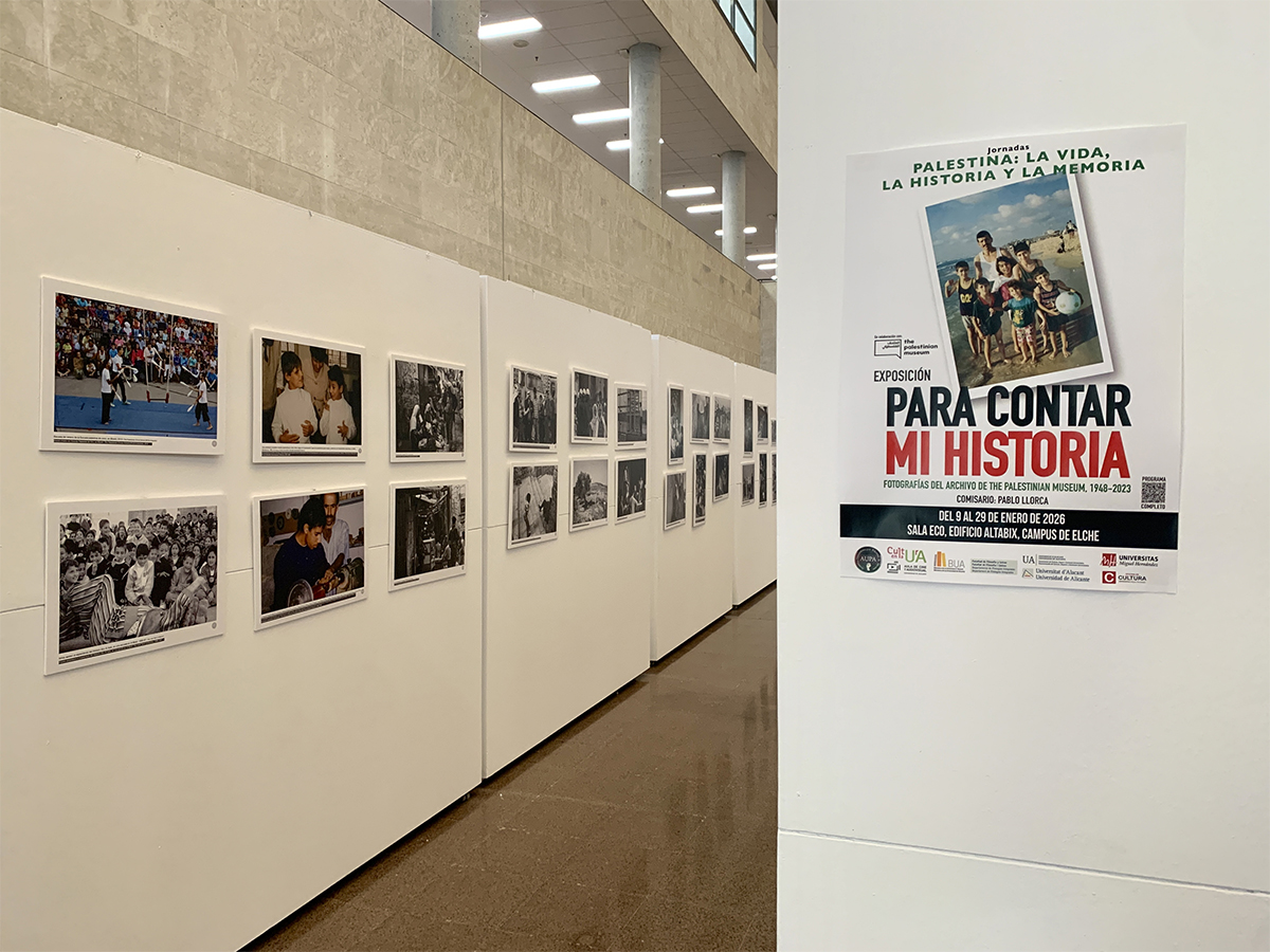 El Vicerrectorado de Cultura, Igualdad y Diversidad de la Universidad Miguel Hernández de Elche (UMH) ha organizado la exposición Para contar mi historia, que recopila más de 80 fotografías procedentes del Palestinian Museum Digital Archive (PMDA). La muestra, organizada junto a la Universidad de Alicante, permanecerá abierta al público hasta el 29 de enero en el ECO, Espai Cultural Obert del edificio Altabix del campus de Elche de la UMH.