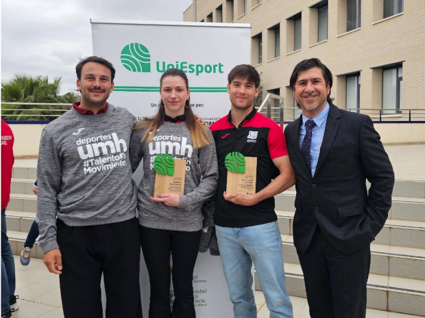 Los deportistas de la UMH Héctor Martín de Miguel y Vladislava Bulat han sido los deportistas galardonados en el acto de entrega de los premios a deportistas y egresados universitarios 2026, en el marco del convenio suscrito entre las universidades valencianas y la Fundación Trinidad Alfonso. Héctor Martín de Miguel es actualmente estudiante del Máster Universitario en Rendimiento Deportivo y Salud, y fue el mejor jugador en el Europeo de Fútbol 7 para personas con Parálisis Cerebral y Daño Cerebral adquirido celebrado en Inglaterra en el 2025. Además, compitió representando a la UMH en el Campeonato de España para personas con discapacidad, celebrado en Fuenlabrada en el año 2025, y obtuvo la medalla de oro y mejor marca española en 400 metros en la categoría T38, además de otra medalla de oro en los 100 metros. Por su parte, Vladislava Bulat es campeona autonómica universitaria en natación 50 libres y atletismo 800 lisos y campeona autonómica en atletismo en 400 vallas, además de haber obtenido un 7º puesto en el Campeonato de España de Deporte Universitario (CEU).