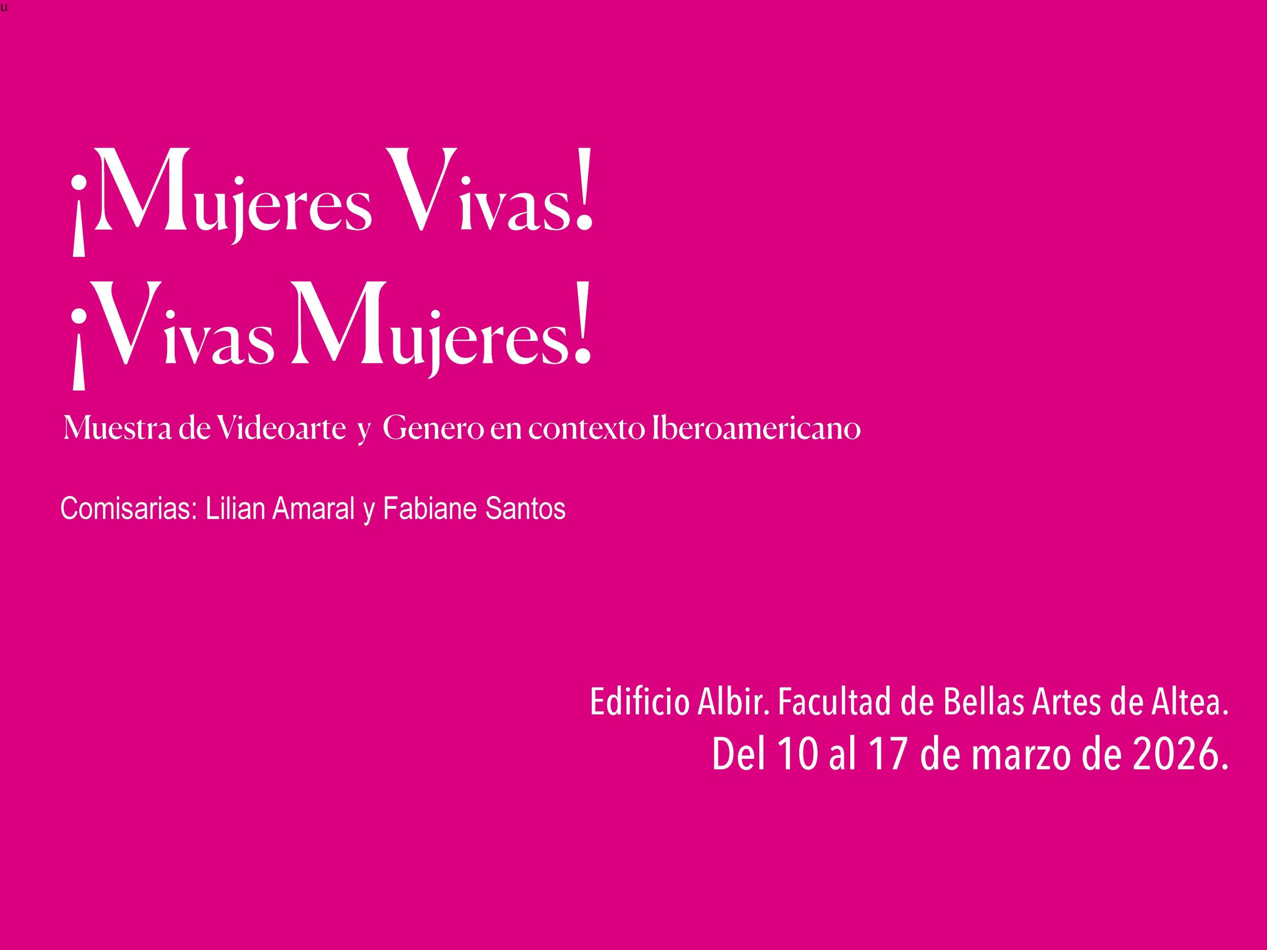 Con esta programación, la Facultad de Bellas Artes de Altea de la UMH reafirma su compromiso con la promoción de la igualdad, la investigación artística y la creación contemporánea y consolida la Universidad como un espacio abierto al pensamiento crítico, la diversidad cultural y el diálogo entre arte y sociedad.